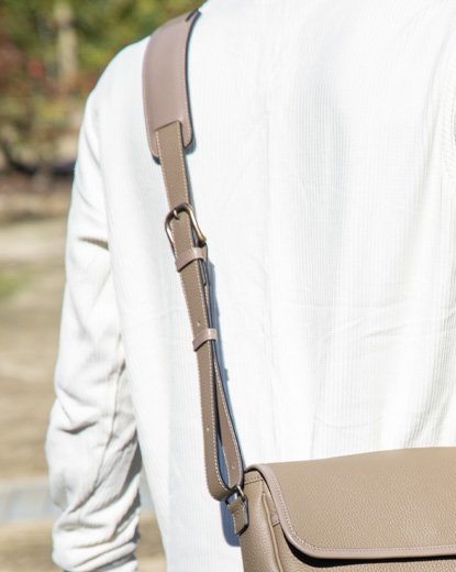 ショルダーの長さは数段階で調整可能なので、ご自身の最適な長さで肩から掛けられます。