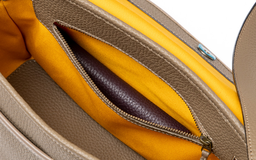 内装にもファスナー付きのポケットも用意。