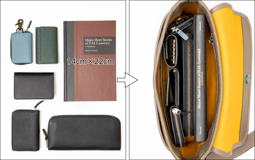 「普段持ち歩くのは財布とスマホ、鍵くらい」という方にとって、Sサイズは理想的な大きさです。